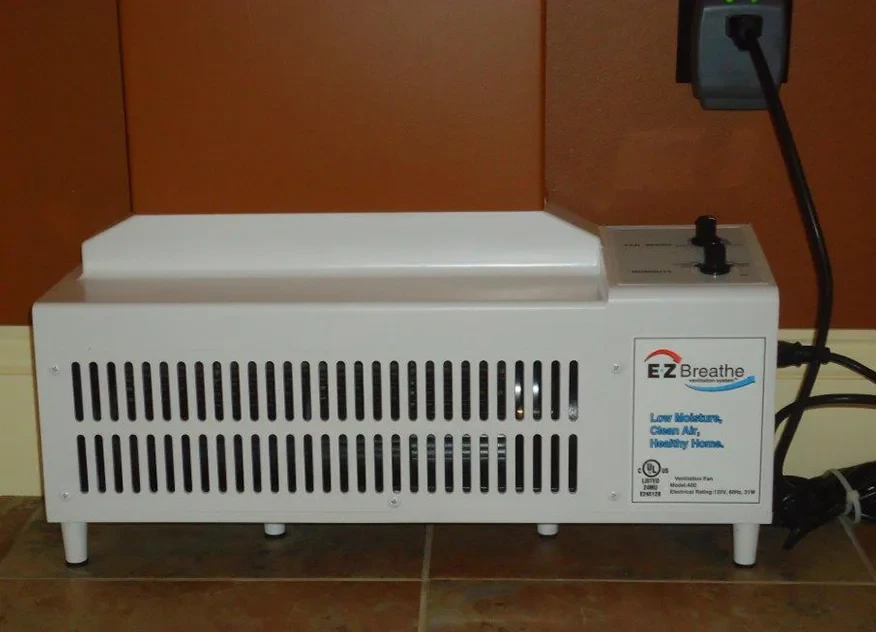 The EZ Breathe ventilation system is a whole-home air exchange system that removes excess moisture and replaces polluted indoor air with fresh, clean air. Instead of collecting water like a dehumidifier, EZ Breathe pushes the damp, contaminated air out of your home.